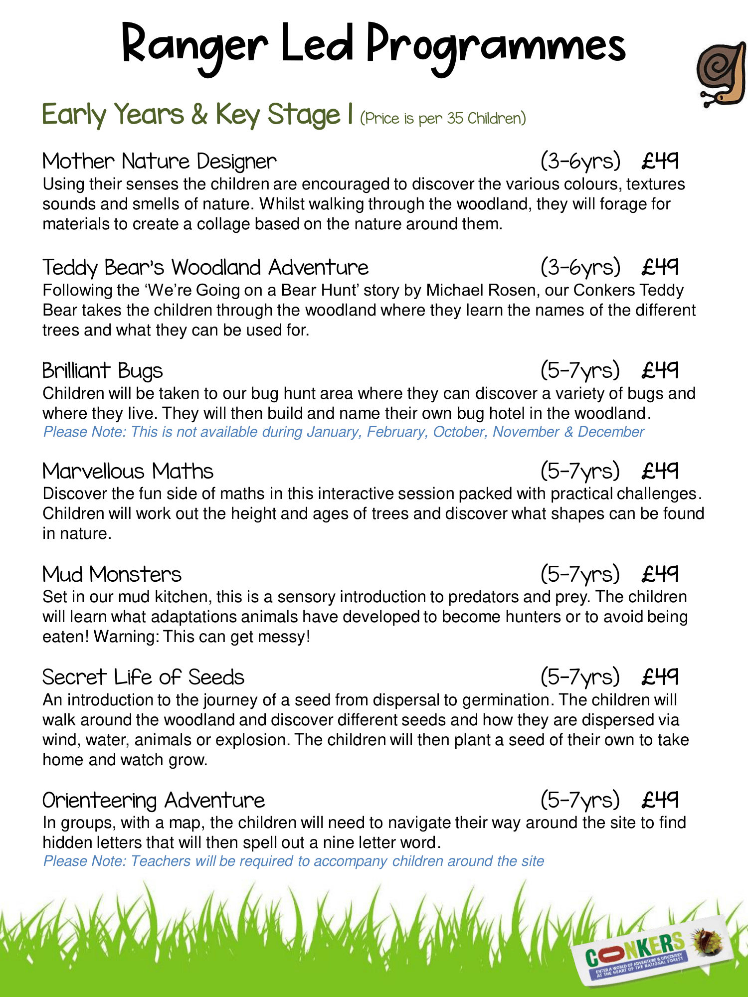 The following Key Stage 1 Ranger led activity sessions are available