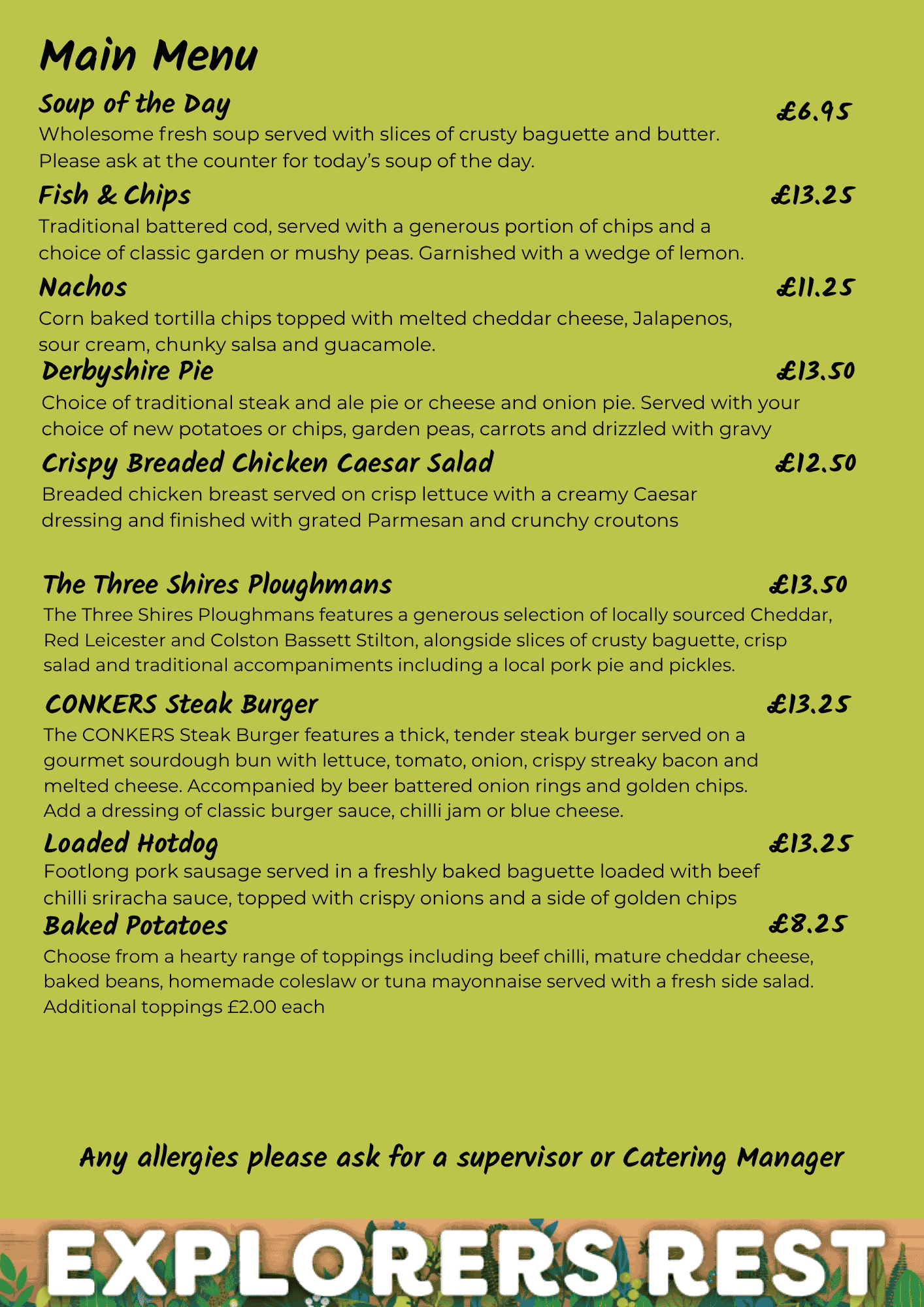 Every day that CONKERS is open, so is The Explorers Rest-aurant!